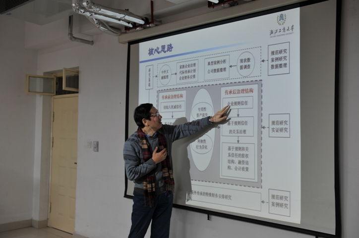 上午,浙江工商大学财务与太阳成集团tyc122ccvip许永斌教授在新校区教科楼太阳成集团tyc122ccvip教师工作室指导太阳成集团tyc122ccvip部分老师申报国家级课题。指导工作分为两个环节,第一环节由公司教师汇报讲解自己的申报选题和论证过程,许经理做详细点评,提出具体意见和建议;第二阶段许经理结合自己的评审经验和申报成功的标书,全面系统传授国家级课题论证要领和技巧。指导工作于十二点半在老师们热烈的掌声中结束。许经理造诣深厚,点评精准,语言幽默,所授经验方法操作性强,参与研讨的老师普遍反映许经理的指导非常有价值,受益很深,对课题申报非常有启发和帮助。上午的研讨会由潘克勤经理和申香华副经理共同主持。