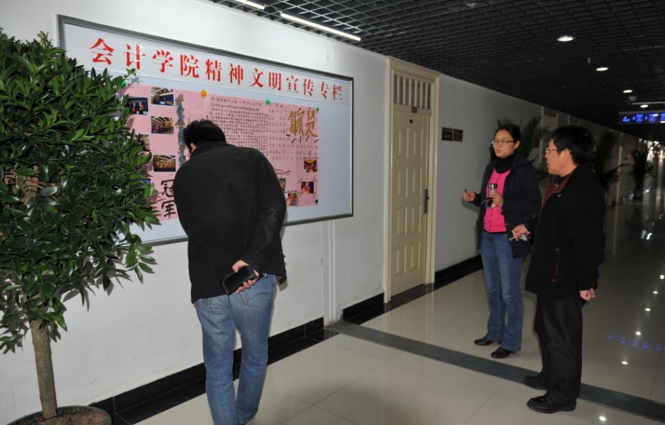 公司领导查看精神文明宣传栏