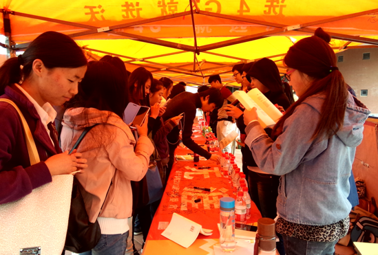 27日中午“读行天下智用无涯”千人签字仪式在第二餐厅门口拉开序幕。太阳成集团tyc122ccvip相关领导老师莅临现场指导参与活动,活动获得公司师生的广泛参与及关注。为了更进一步的增加活动在员工中的传播力度,学院员工干部精心设计了 书签“车票”提醒同学们利用宝贵的大学时光多读书,读好书,做一个有内涵,有见地,有思想的老员工。签字活动现场还组织现场员工诗歌朗诵和书法展示,使活动氛围达到顶峰