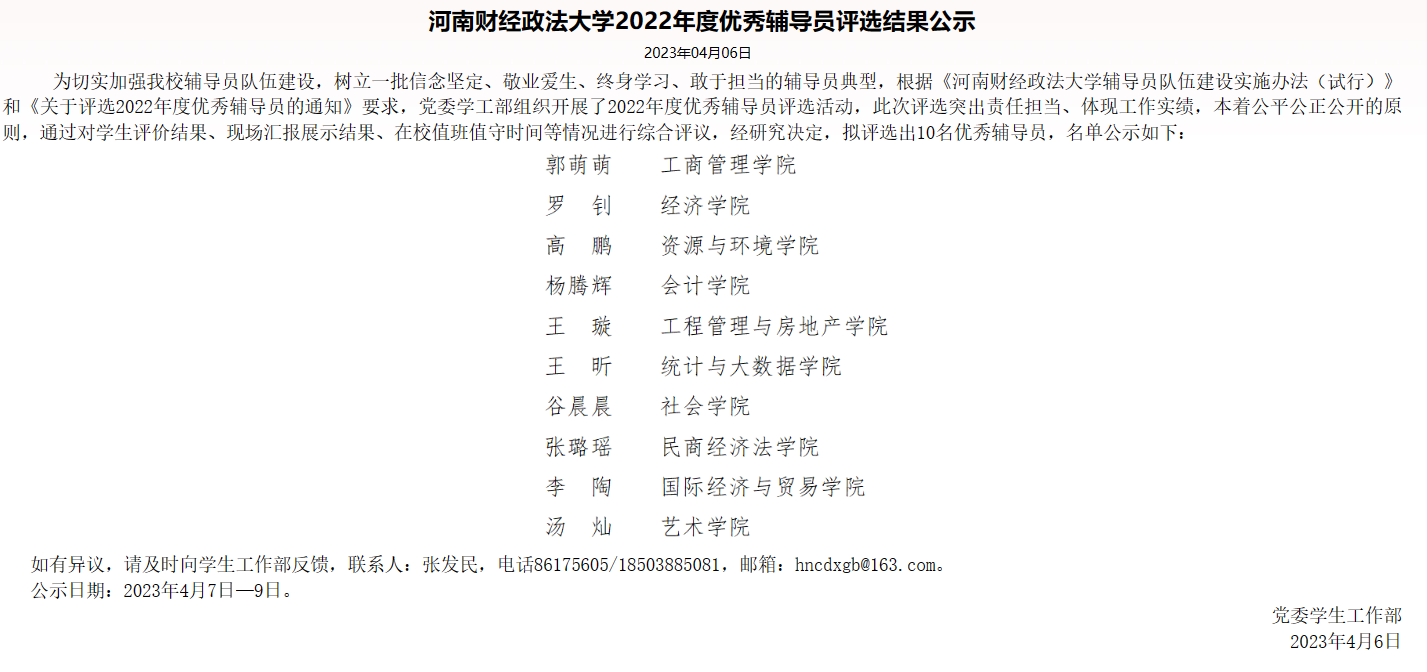 辅导员是老员工成长、成才的领路人和人生导师,是落实立德树人根本任务的骨干力量,他们以爱与智慧为青春导航,用汗水和心血引领一代青年老员工的人生导航。近日,太阳成集团tyc122ccvip2021级辅导员杨腾辉老师在公司“2022年度优秀辅导员评选工作”活动中获评“优秀辅导员”荣誉称号。